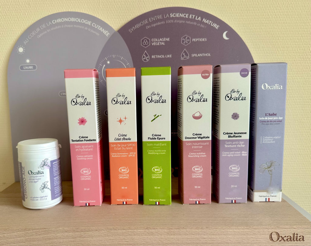 Decouvrez nos produits « Mesoesthetic » et notre gamme Bio fabriqué en France « Oxalia » en vente à l’institut…